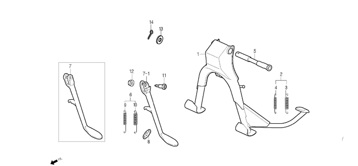 -N°5 Axe béquille -N°6 Ressorts de béquille latéral