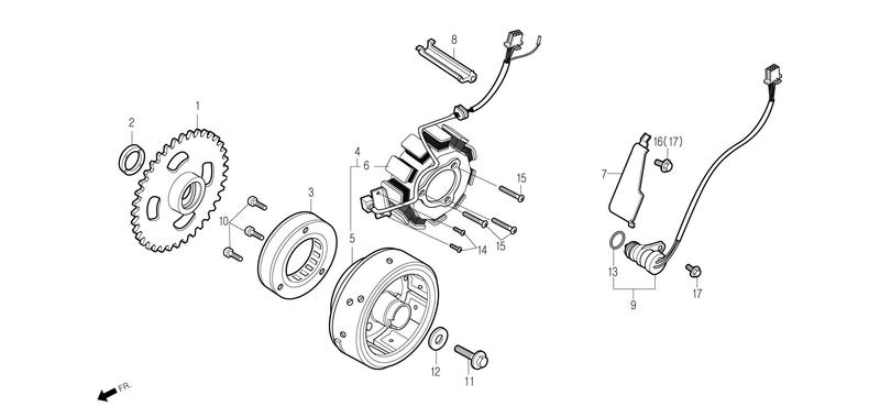 -N°3 Roue libre de démarreur -N°4 Alternateur -N°5 Volant