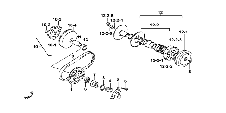 N° 10 Poulie Primaire (variateur) : 10-1 (galets)+10-2 (guide)+10.3 (plateau)+10-4 (cloche)